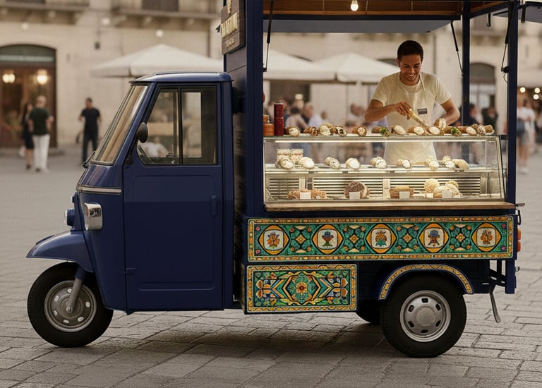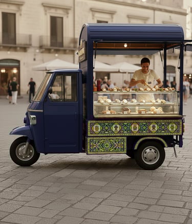 Depuis 1143, nous perpétuons la tradition sicilienne du cannolo, préparé à la minute dans notre triporteur de luxe à Aix-en-Provence.